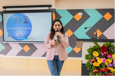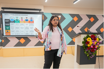 The session focused on mental health awareness, encouraging students to openly discuss their well-being, emotional challenges, and techniques to support psychological growth. Through interactive dialogue and practical strategies, Shilpa Tambe emphasized the importance of healing and personal development as foundational aspects of student success in the demanding environment of management education.