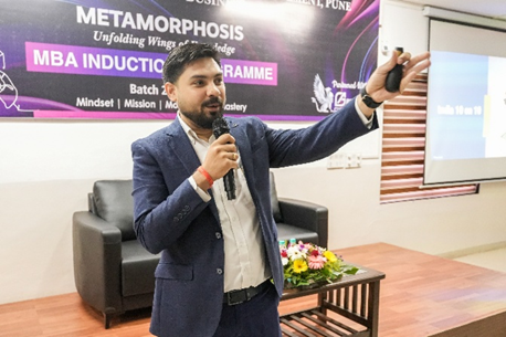 The session titled "Pink Paper Power: Stay Ahead with Business News" during the MBA Induction Programme 2025 was conducted by Mr. Neelesh Atre. This session focused on equipping students with the skills and awareness to keep current with evolving business news and market trends. It included discussions on how to critically analyze business news, use it effectively for academic and professional advantage, and stay informed in a fast-changing corporate environment—a vital capability for future managers and decision-makers.