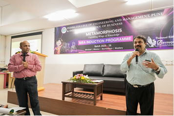 The program commenced with a Welcome Kit Distribution, Library and Lab registration. Dr. Tatake welcomed the students and graciously introduced the faculty setting the tone for the coming weeks. A diverse array of sessions followed, covering topics like Case Study Analysis by Dr. Pallavi Sajanpwar, Marketing Fundamentals, and Accounting Basics, to build a strong foundation for the students’ academic journey. Dr. Anuradha, Head IQAC gave an overview of the AICTE Statutory and Non – Statutory Committees. Dr. Pallavi and Dr. Aatish also gave an overview of the New Education Policy, the SPPU Syllabus. The administration team also explained the rules and regulation of the institute and hostel.